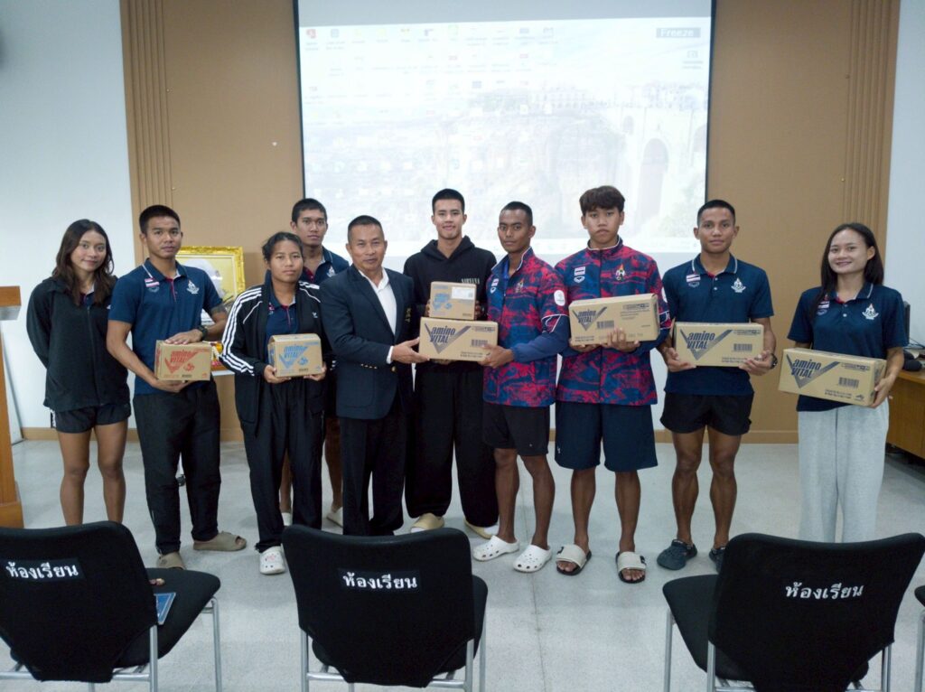 เมื่อวันศุกร์ที่ 31 ตุลาคม 2568 พลเรือเอก อภิชาติ ปัญญากิตติวัฒน์ กรรมการสมาคมฯ และประชาสัมพันธ์ ได้เป็นผู้แทนสมาคมกีฬาปัญจกีฬาฯ ได้นำผงเครื่องดื่มและเจลวุ้นสำเร็จรูปคาราจีผสมกรดอะมิโนกลิ่นแอปเปิ้ล ตลอดจน Amino vital shot Amino acids BCAA & Arginine