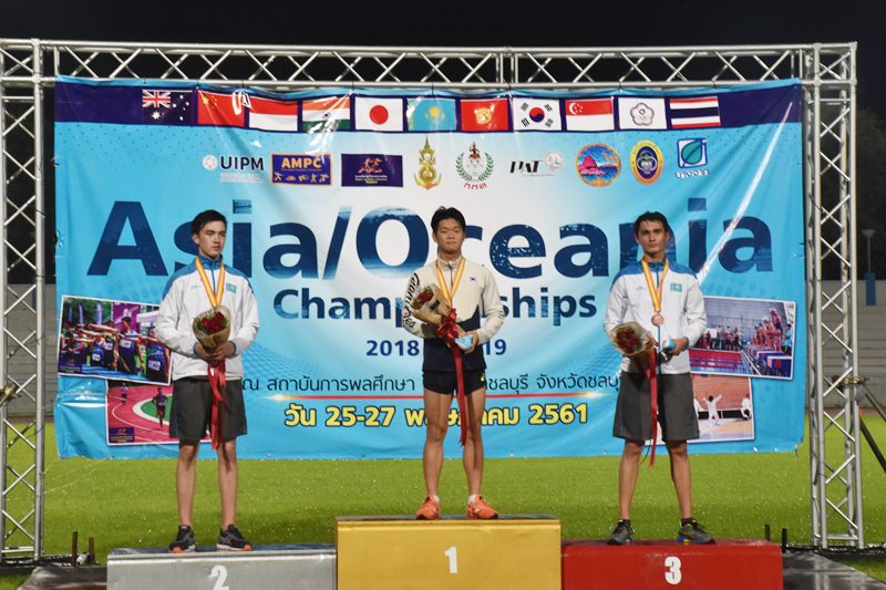 วันที่ 26 พ.ค.61 เป็นการแข่งขันปัญจกีฬา ประเภทชาย รุ่นอายุไม่เกิน 19 ปี ชิงแชมป์โซนเอเชียและโอเชียเนีย ณ สถาบันพลศึกษา วิทยาเขตชลบุรี อันดับที่ 1 Juseong Moon จากประเทศเกาหลีใต้ ด้วยผลงานคะแนนรวม 1,114 คะแนน อันดับที่ 2 และ 3 เป็นของนักกีฬาจากประเทศคาซัคสถาน ได้แก่ Temilan Abdraimov ทำคะแนน 1,071 คะแนน และ Adil Ibragimov ทำคะแนนได้ 1,061 คะแนน