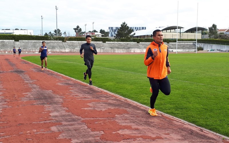 วันที่ ๒๙ มี.ค.๖๑ คณะนักกีฬาทีมชาติไทยที่เข้าค่ายเก็บตัวฝึกซ้อมในรายการ Training Camp in Preparation for the U19 World Championships ณ ประเทศโปรตุเกส ช่วงเช้าเป็นการฝึกซ้อมวิ่ง ลงโปรแกรมหนัก ช่วงบ่ายเป็นการฝึกซ้อมวิ่ง, ฝึกซ้อมยิงปืน และการล่อเป้าฟันดาบ