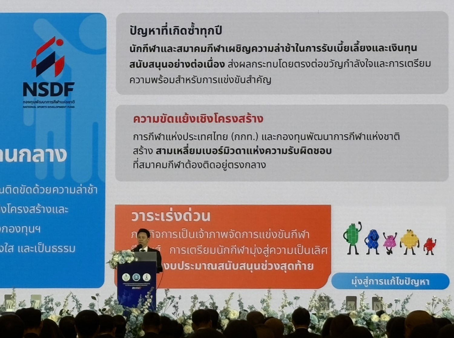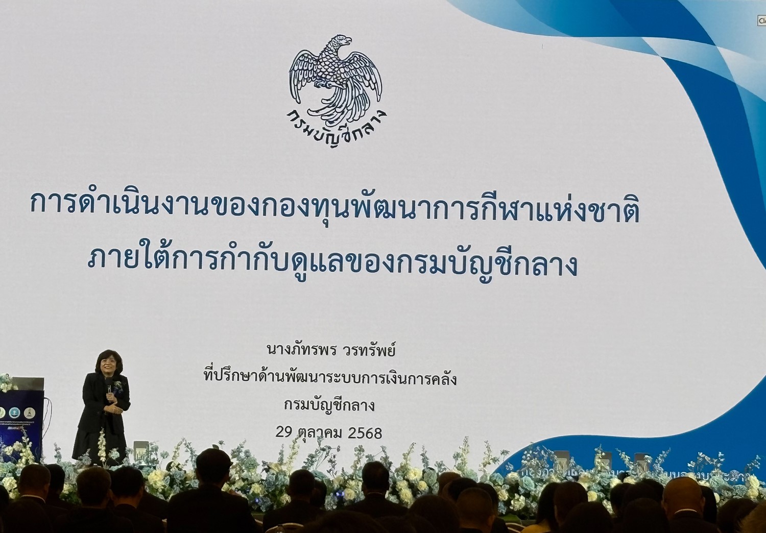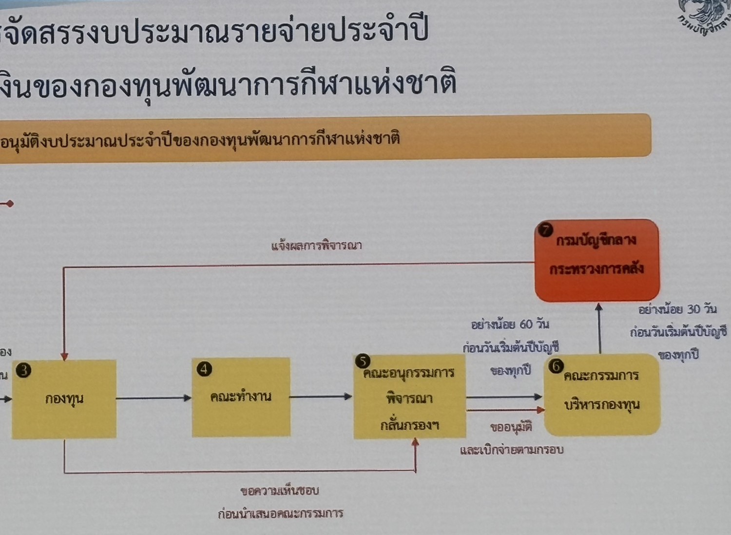 และส่วนที่สำคัญเพิ่มเติม การบรรยายโดย นาง ภัทรพร วรทรัพย์ ที่ปรึกษาด้านพัฒนาระบบการเงินการคลัง กรมบัญชีกลาง เกี่ยวกับการดำเนินงานกองทุนพัฒนาการกีฬาแห่งชาติ ภายใต้การกำกับดูแลของ กรมบัญชีกลาง