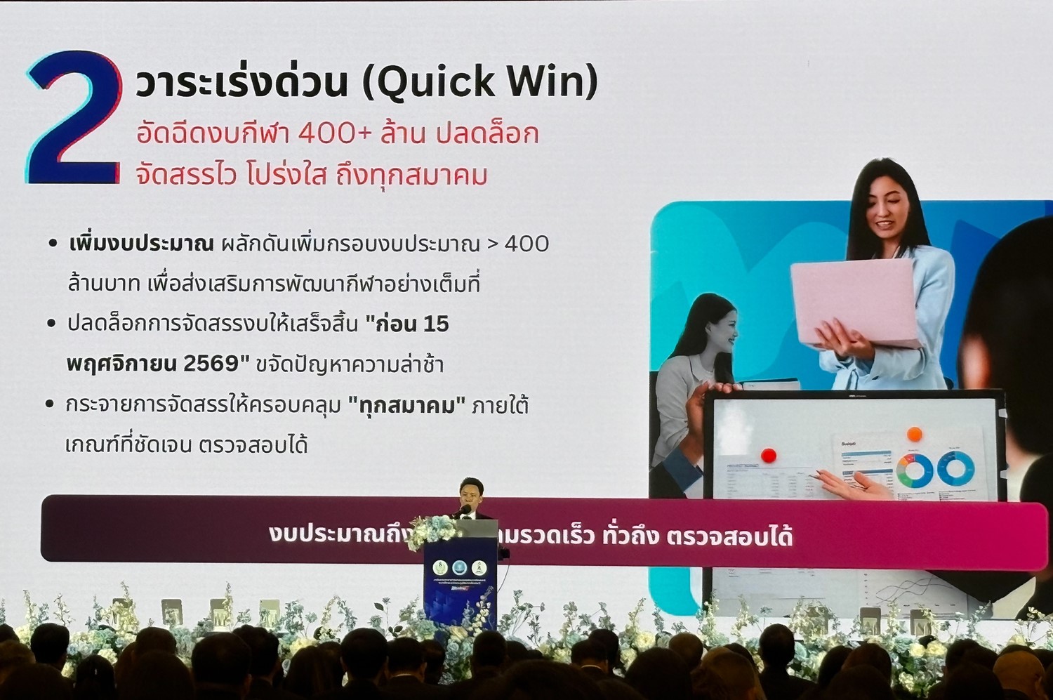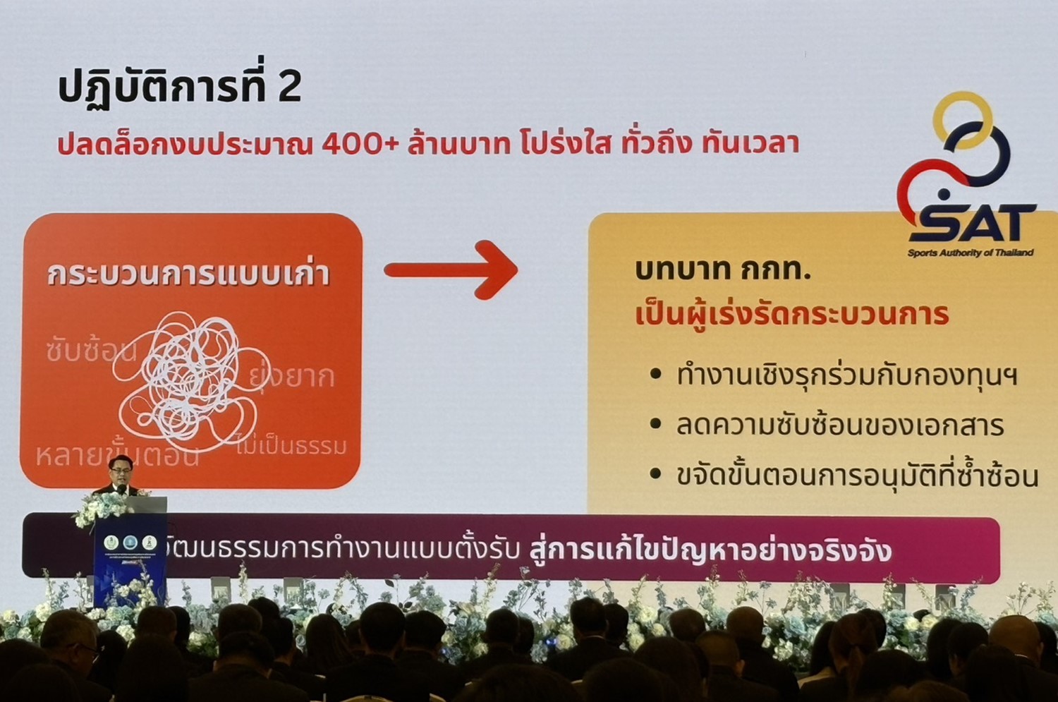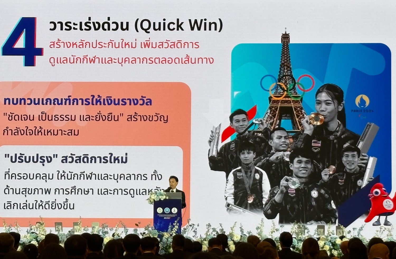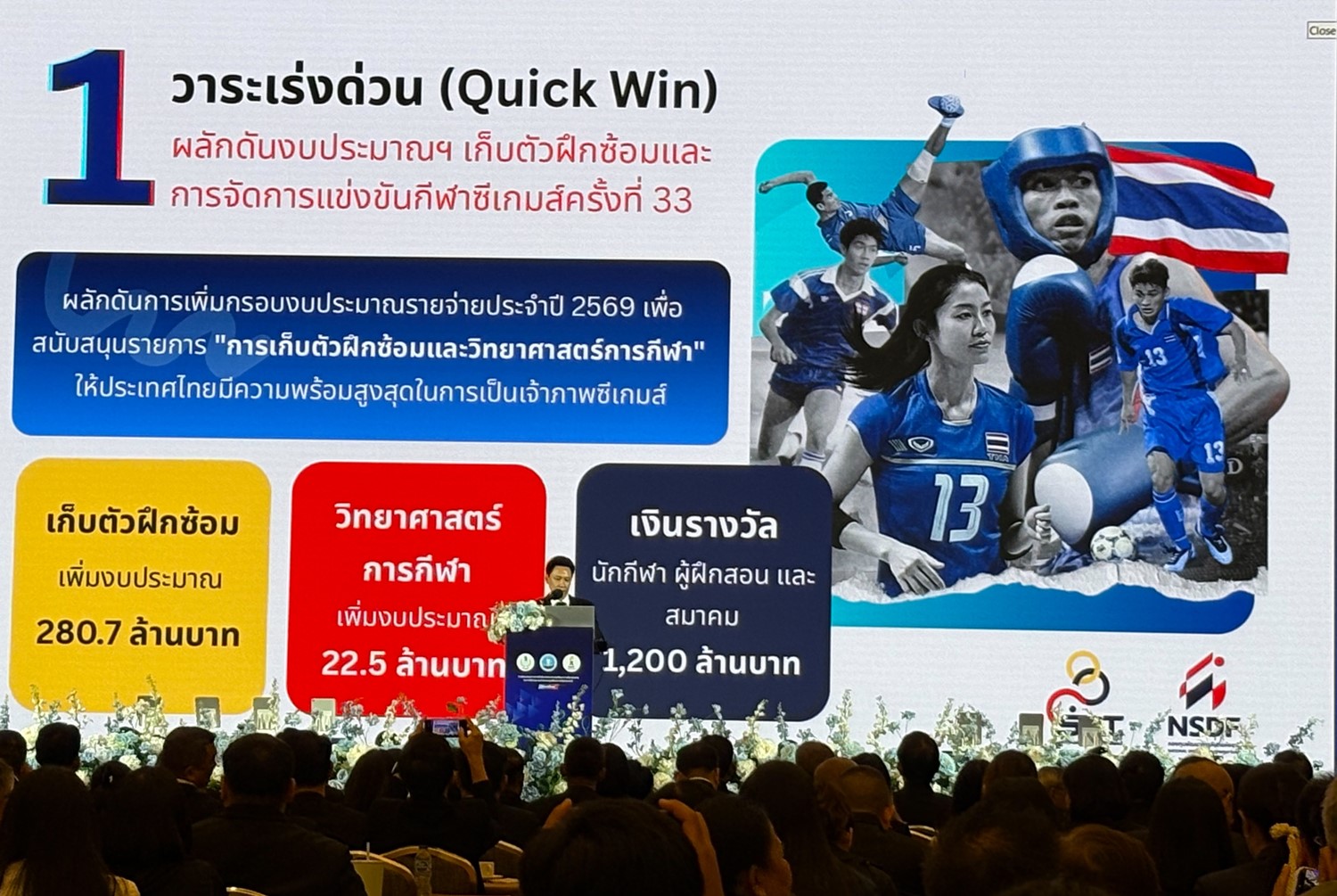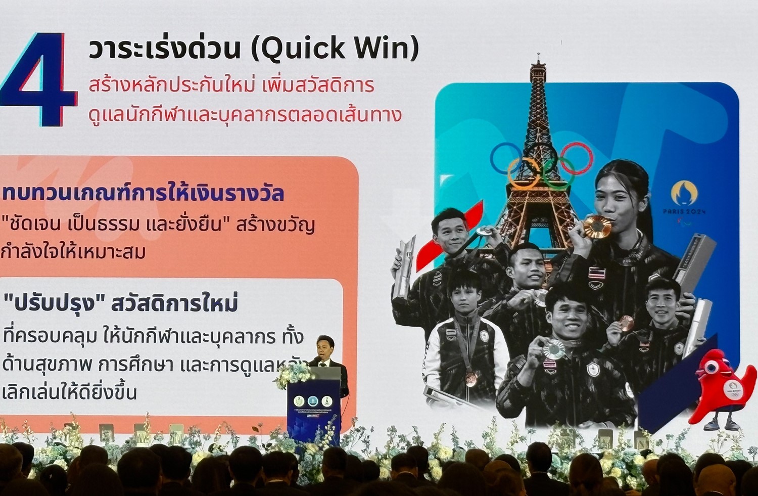 นาย อรรถกร ศิริลัทยากร เป็นประธานกล่าวเปิดงาน และแถลงนโยบาย Quick win วาระเร่งด่วน 100 วัน ณ โรงแรม เดอะ แกรนด์โฟร์วิงส์ คอนเวนชั่น กรุงเทพฯ( ศรีนครินทร์) ชั้น 8 ห้อง Pavilion A โดยมี 4 วาระเร่งด่วนสู่ยุคใหม่ของกีฬาไทย โดยมีรายละเอียดที่สำคัญ สรุปได้ดังนี้