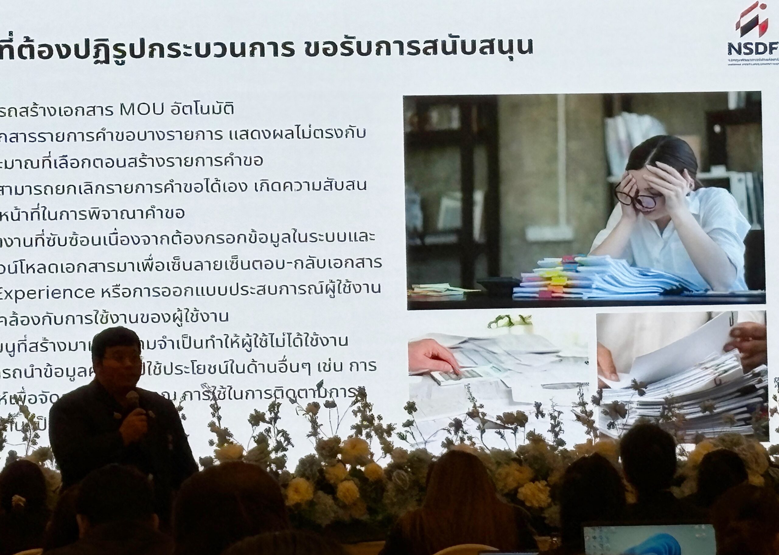 กรรมการ/ปชส สมาคมฯ และเจ้าหน้าที่ฝ่ายธุรการและงบประมาณ เข้าร่วมรับฟังการบรรยายแนวทางการกรอกข้อมูลคำขอ และการปรับปรุงคำขอการปรับแผน การรายงานผล และ MOU